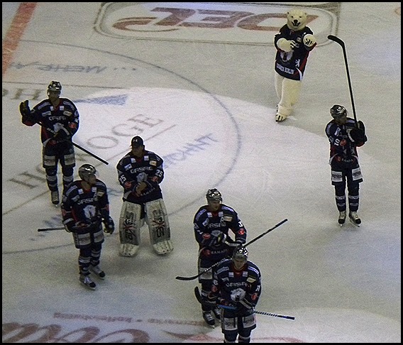 Sonntag war ich mal wieder unterwegs... rüber in den Osten der Stadt. Wie schon erwähnt habe mit meine Eltern ein Ticket für die Eisbären geschenkt und ich war schon im Vorfeld wieder sehr aufgeregt. Habe sogar davon geträumt, dass Bully und ich ein cooles “High 5-Foto" machen. Wie vielleicht schon erwähnt, habe ich diese Möglichkeit beim letzten Spiel leider verpasst :(