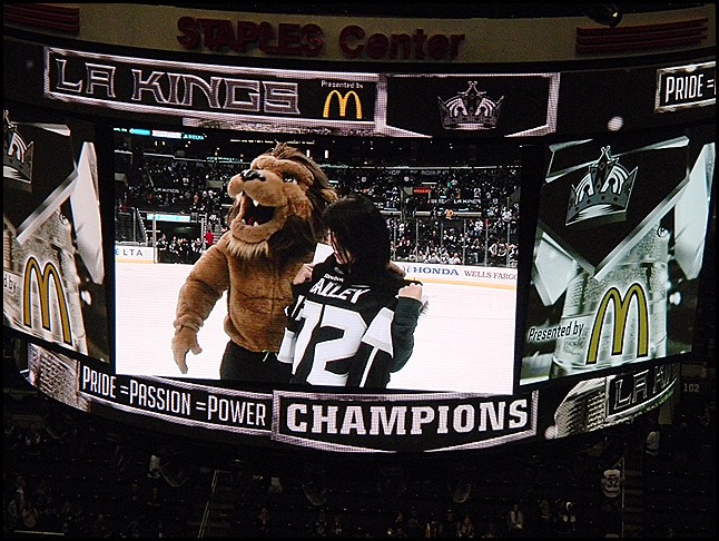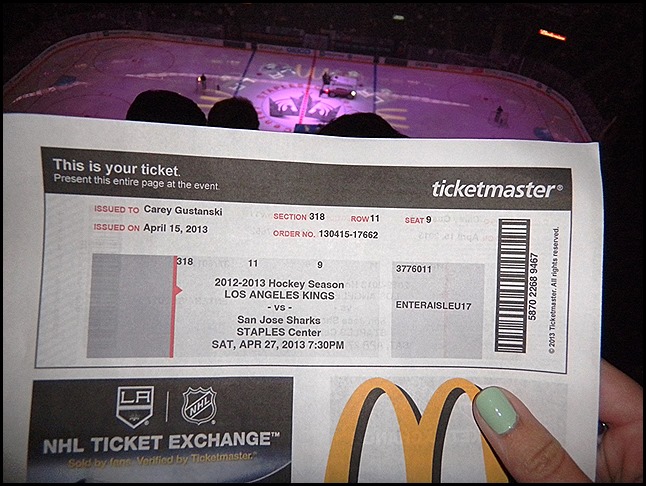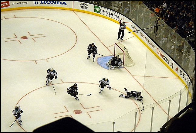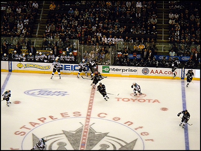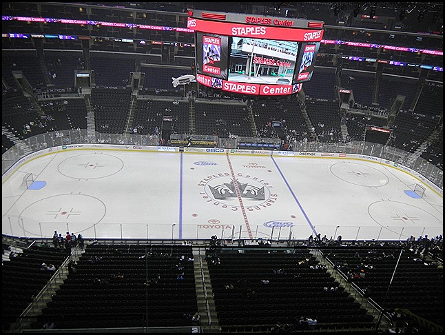 Sooo, und nun etwas Hockey!!!! Ich weiß leider gerade nicht mehr, was ich schon erzählt habe, haha. Erstmal: Es war wirklich SUPER! Leider nur 5 Tore insgesamt, 1 Zeitstrafe und keine Schlägerei, aber sonst war es wirklich toll. Das Staples Center ist glaube ich noch größer als die O2-World, aber ich habe Karten an etwa der Stelle herausgesucht, wo ich in Berlin auch saß.