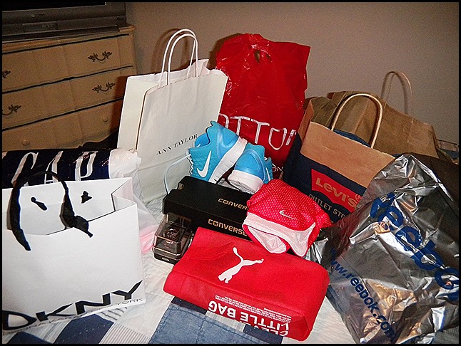 Uhm, wo war ich? Also Sophia und ich haben kräftig eingekauft. Wir haben öfters mal zusammen gezahlt, dass wir über die “magische” 100$-Grenze gekommen sind, ab der es Prozente gab. Oder einfach bei “buy 1 get 1 50% off”. So haben wir beispielsweise auch unsere coolen Armbanduhren bei Fossil bekommen. Schnäppchen! Uns waren unsere Tüten irgendwie dann mit der Zeit peinlich, also haben wir Tüte in Tüte getan. Und die unhandlichen Tüten habe ich gleich weggeschmissen. Sorry, Nike, aber dieser komische Plastikbeutel war MIST. Außerdem wurden wir so breit, dass wir nicht mehr durch manche Läden gekommen sind, weil die zum Teil recht eng aufgebaut sind. Besucherunfreundlich! Am Ende haben wir bei einem Stück Apfelkuchen alles aufgerechnet, wer wo gezahlt hat und das Auto. Also versteht ihr, was ich meine? Jedenfalls ist dabei rausgekommen, dass wir genau gleich sind :D Da mussten wir wirklich lachen, haha. Hätten wir nicht gedacht, weil es sich irgendwie für mich so angefühlt hat, als hätte Sophia viel mehr von mir gezahlt. Aber durch die Prozente und sowas hat sich das dann scheinbar recht gut ausgeglichen ;)
