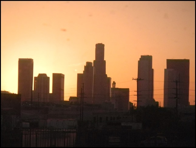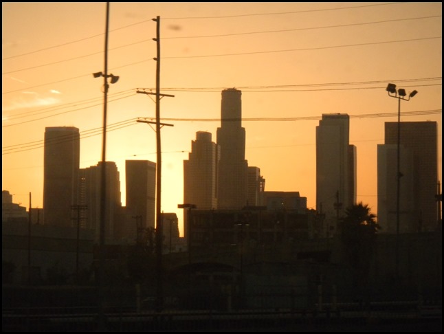 Die ganze Strecke an der Küste entlang hinunter bis San Diego ist wirklich schön. Als wir in LA wieder rausgefahren sind, da haben wir genau den Sonnenuntergang erwischt, weshalb ich die Skyline in wirklich schönem Licht sehen konnte. Die Bilder sind leider nur durch die dreckige Scheibe gemacht, aber es sieht trotzdem wunderschön aus (finde ich). Als die Sonne dann untergegangen war, da war das dann nicht mehr so interessant, was man außen sehen konnte. Also haben wir dem Ende der Fahrt entgegengefiebert. Und als es kam, da war es wirklich schön: