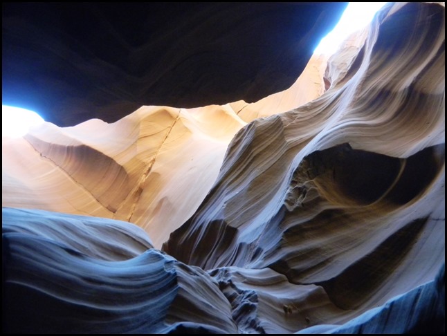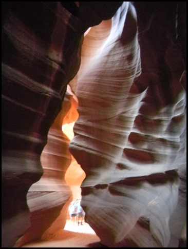 Unser guide hat uns dann in den Bereich der Slots geführt und irgendwie fand ich das von Beginn an seltsam. Er hat immerzu gesagt: "put your camera here, no flash, take the photo of this. Ok, let's go." Das ist bestimmt nicht unangenehm, wenn man mit 2 Leuten unterwegs ist, aber Iris und ich waren ja mit einer Gruppe von insg. 14 Mann (Maximalanzahl, die auf den Truck passt) unterwegs, was dazu geführt hat, dass wir sehr schnell nicht mehr gesehen haben, was er gezeigt hat, dass wir keine Bilder, die bis zum Boden gehen, machen konnten und auch nach hinten war das kaum möglich, weil da direkt die nächste Gruppe war. Die Gesteinsformation ist wirklich wunderschön, sowas habe ich noch nie in meinem Leben gesehen! Jedoch hat mich diese Touristenabfertigung derart entsetzt, dass ich nichts genießen konnte. Ich wollte nicht mal wirklich in den Gift Shop (und das will was heißen!). Auf dem Rückweg durch diese "Höhlen", da wollten wir noch Bilder machen, wurden aber von einer anderen Frau mehr als unhöflich angeschnauzt, dass wir nicht anhalten sollen. So sind wir auch zurück quasi durchgehetzt ohne zu genießen. Was zur Folge hatte, dass wir außen 10min auf den Rest der Gruppe warten mussten, weil sie alle Fotos gemacht haben. Ich war wirklich sauer, dass ich dieses wunderschöne Stück Natur nur so erleben konnte. Später haben wir erfahren, dass man dort auch hinwandern kann ohne die Jeeptour, aber der Antelope Canyon selbst ist ja für die Öffentlichkeit nicht zugänglich, also müsste man dann auch wieder diese Tour machen und kann nicht so staunen, wie es eigentlich nötig wäre.